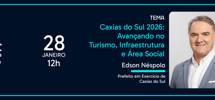 A Câmara de Indústria, Comércio e Serviços de Caxias do Sul (CIC Caxias) promove, no dia 28 de janeiro, quarta-feira, a primeira edição de 2026 da RA CIC Caxias (reunião-almoço). O encontro terá como palestrante o prefeito em exercício de Caxias do Sul, Edson Néspolo, que apresentará o tema “Caxias do Sul 2026: avançando no turismo, infraestrutura e área social”.