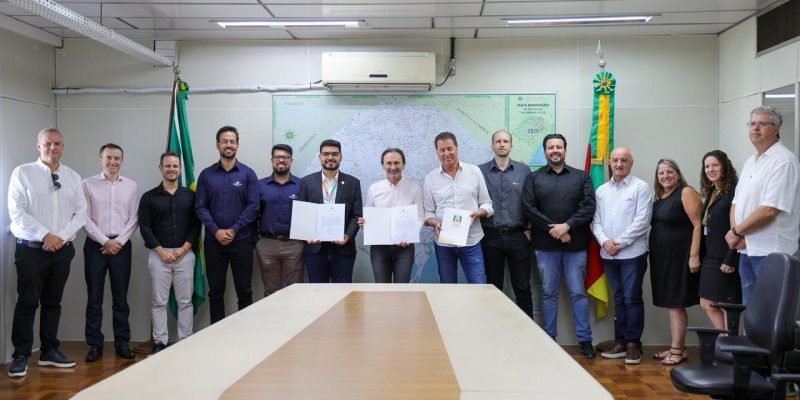 Representantes das três obras de Farroupilha estiveram na sede da Selt, em Porto Alegre, para ato de assinatura do PIAA – Foto: Fabrício Santos/Selt
